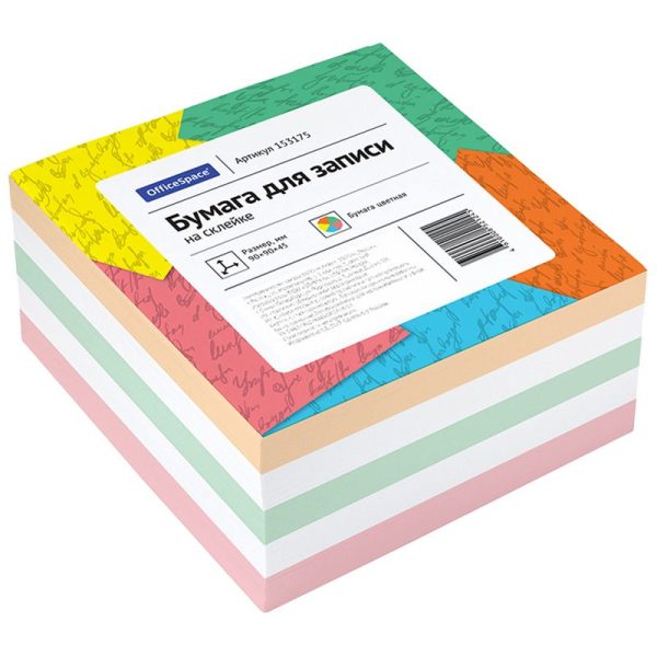 Блок для записи на склейке OfficeSpace, 9*9*4,5 см, цветной