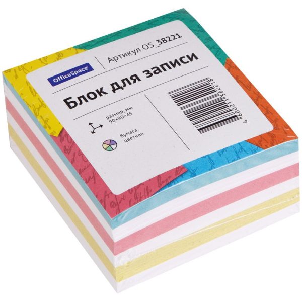 Блок для записи OfficeSpace, 9*9*4,5 см, цветной, ассорти, эко.