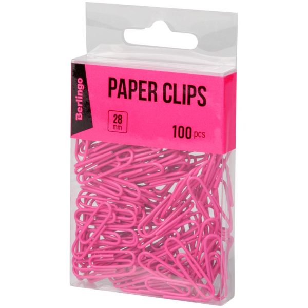 Скрепки 28мм, 100шт. «Berlingo», цветные, розовые, ПВХ упаковка