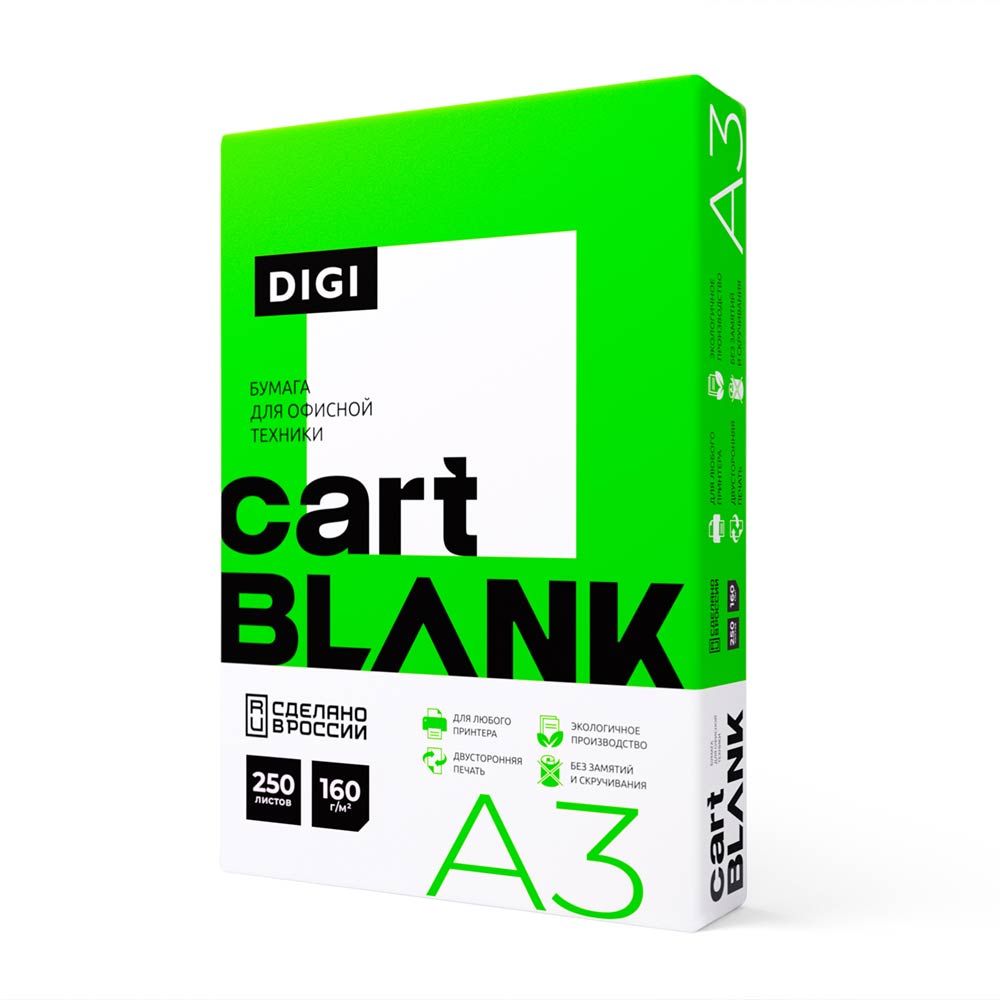 Бумага «Cartblank Digi», А3, 160 г/м2, 250 л., белая, для цветной лазерной печати. Многофункциональная бумага «Cartblank Digi» позволяет получать высококачественные полноцветные или черно-белые копии при печати и копировании. Отбеливание бумаги происходит без использования элементарного хлора (технология ECF), что положительно сказывается на сроке службы печатающей техники.