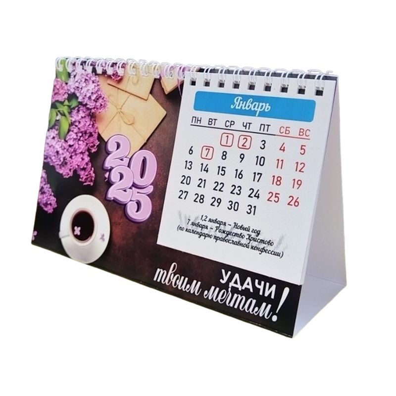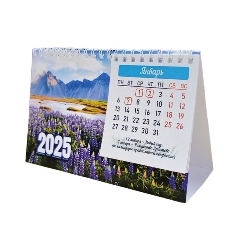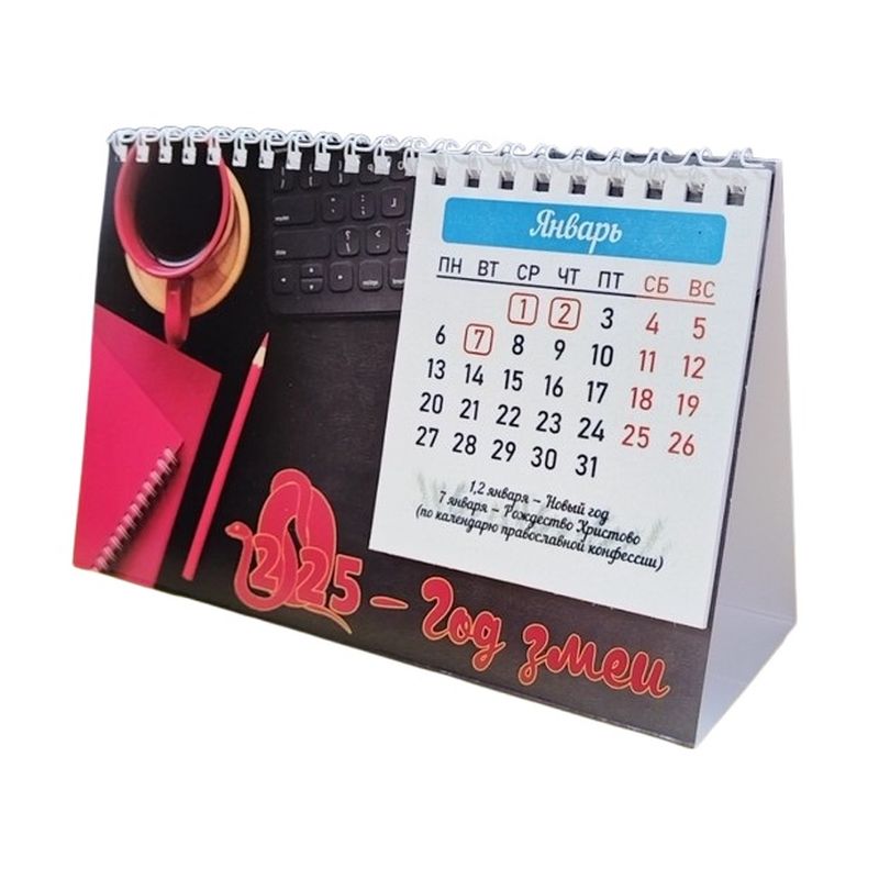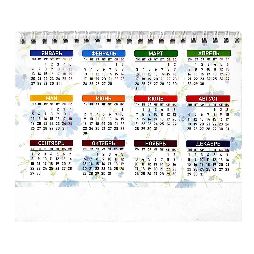 Календарь настольный «Домик» на спирали. Цветное изображение оформляет таблицу календаря. Каждая страница соответствует определенному месяцу года и имеет индивидуальное оформление.