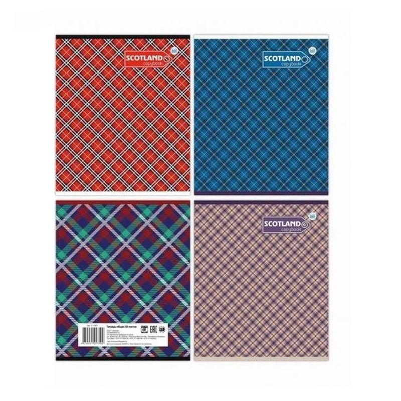 Тетрадь 48л., А5, клетка, скоба «Шотландская клетка». Блок офсет 60 г/м2, белизна 80-90%. Обложка мелованный картон, припрессовка пленкой, 4+0 цветная печать.