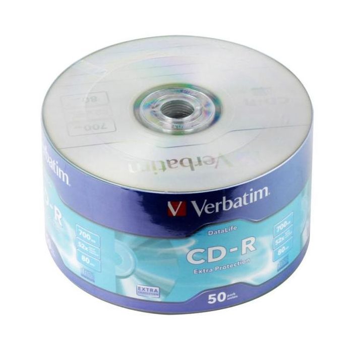 Диск CD-R Verbatim «DL Extra Protection» 700Mb, 52x, в пленке 50 шт. для хранения информации, создания персональных архивов, мультимедийных презентаций и библиотек цифровых изображений, архивов файлов. Диск CD-R поддерживает однократное сохранение данных без возможности перезаписи.