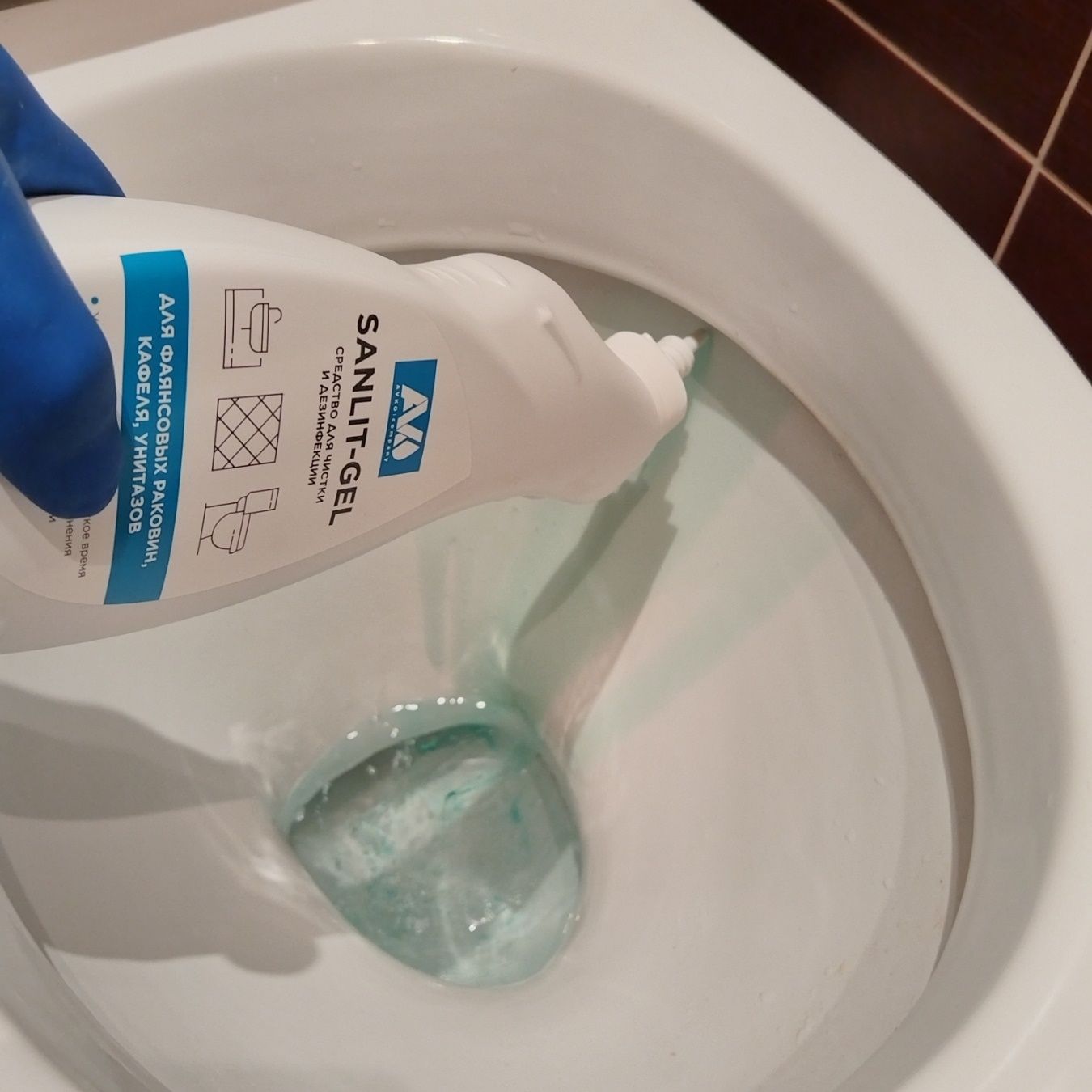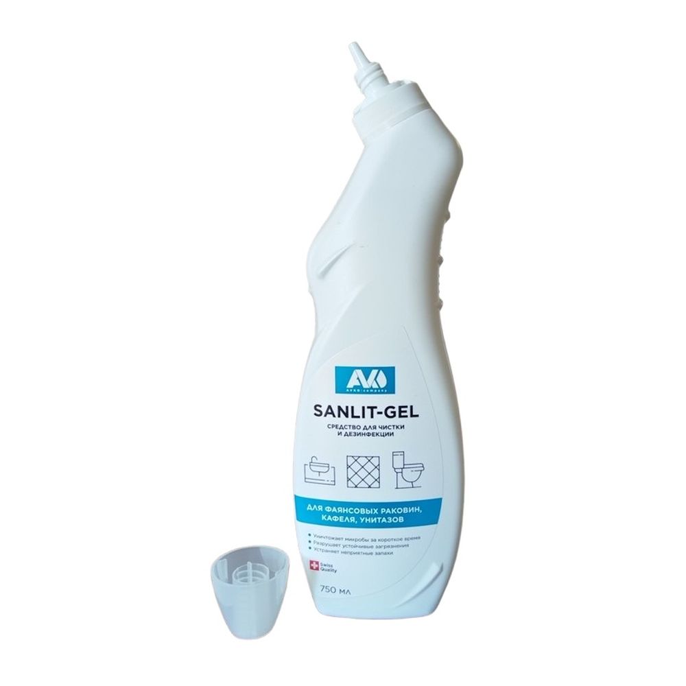 Средство для чистки и дезинфекции «Санлит-гель», 750 мл удаляет устойчивые загрязнения, такие как мочевой и водный камень, ржавчина и т.п. с поверхности унитазов, фаянсовых раковин, кафеля. Обладает дезинфицирующим эффектом. Имеет густую консистенцию и удобный флакон с изогнутым носиком для труднодоступных мест.