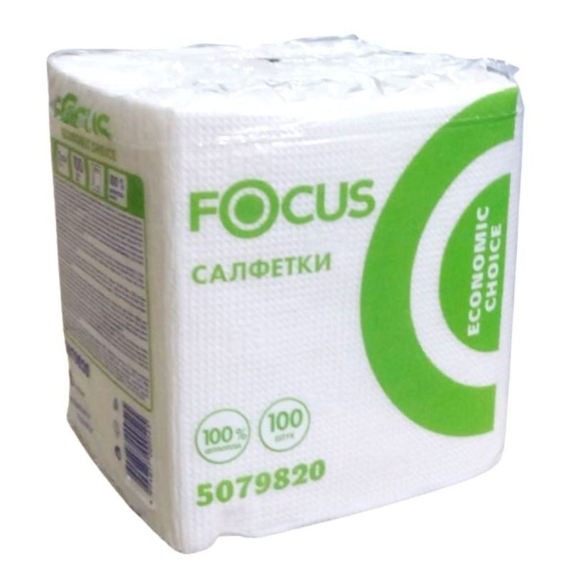 Салфетки бумажные FOCUS «ECO» 24*24 см, 1-слойные, белые, 100 штук