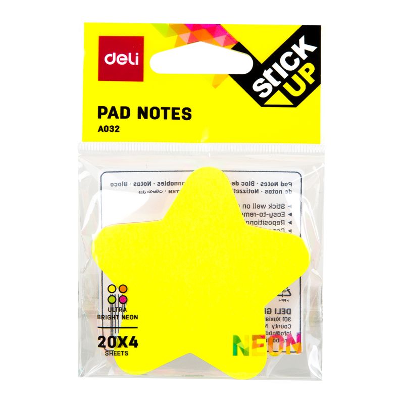 Блок для заметок фигурный, с липким слоем 76*76 мм, 4*20 листов. Выполнен в 4 различных формах. Каждый блок состоит из 4 ярких неоновых цветов. Применяется для оперативных записей, клеится на любую гладкую поверхность. Легко снимается, не оставляет следов.