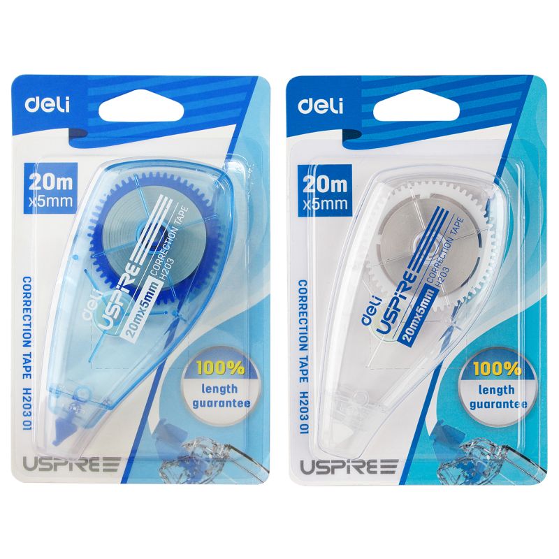 Корректирующая лента в роллере «Deli-20301H», 5 мм*20 м. Прозрачный пластиковый корпус. Лента имеет прочную структуру, устойчива к разрывам. Применяется для быстрой и аккуратной корректировки печатного и рукописного текста. Корректирующая лента не требует высыхания, корректировку можно проводить сразу. Защитный колпачок на на рабочей части корректирующего роллера.