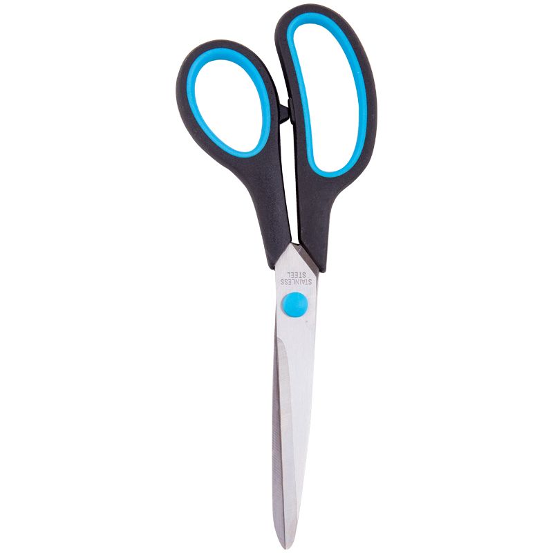 Ножницы OfficeSpace 21,5см, эргономичные ручки, черные с синими вставками, ПВХ чехол с европодвесом. Удобные и практичные офисные ножницы, предназначены для резки бумаги и картона.