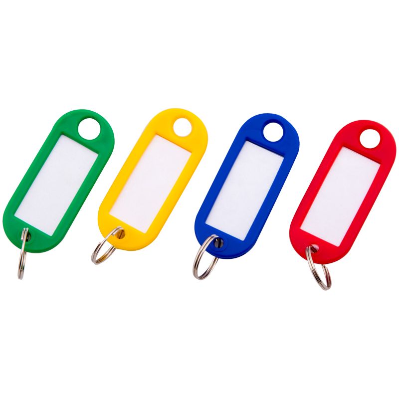 Брелок для ключей пластиковый, с биркой для подписи, длина 52 мм, цветной, цвета в ассортименте. Металлическое кольцо, прозрачная пленка закрывает табличку для надписи.