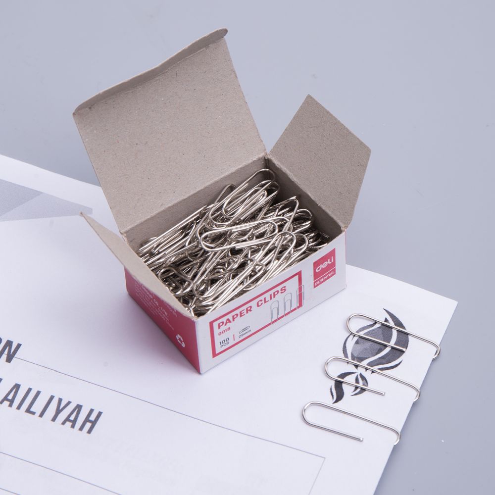 Скрепки 29 мм, 100 шт. «Deli», никелированные, овальные, отогнутый носик, в картонной упаковке. Никелированное покрытие обеспечивает эстетичный внешний вид и практичность в использовании. Скрепки не ржавеют, не пачкают бумагу, обеспечивают надежное скрепление листов бумаги.