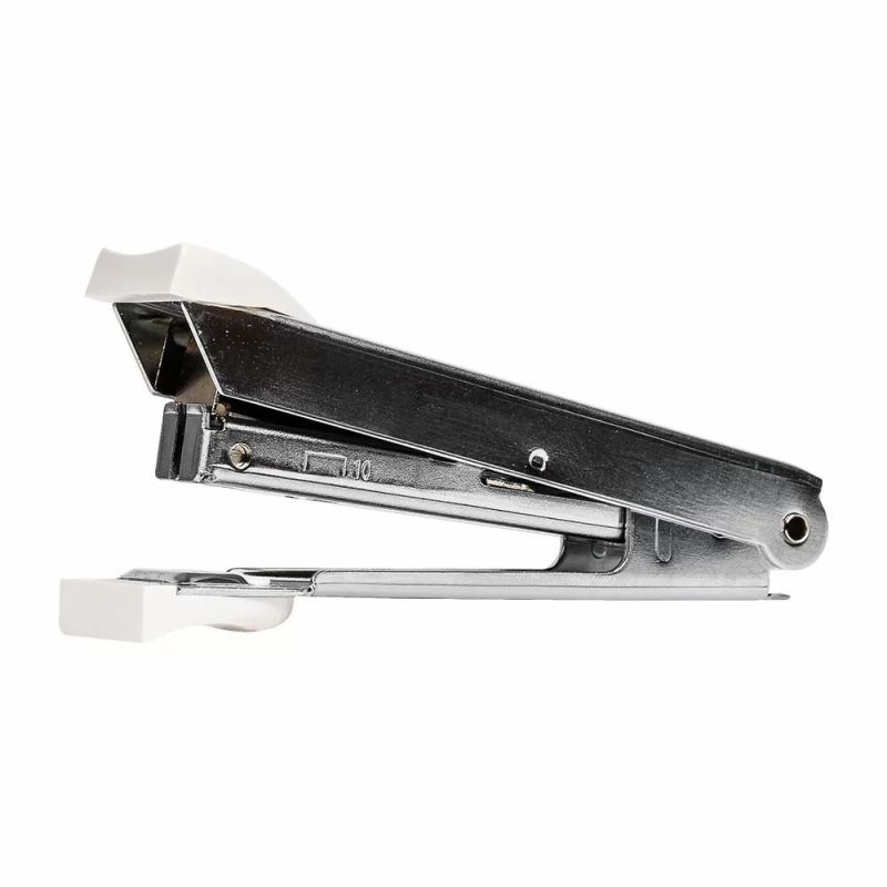 Скобосшиватель №10 «KANGARO», 20 л., изготовлен из металла, пластиковый держатель обеспечивает удобство использования. Степлер раскрывается на 180 градусов, благодаря чему может использоваться для крепления документов к офисным доскам.