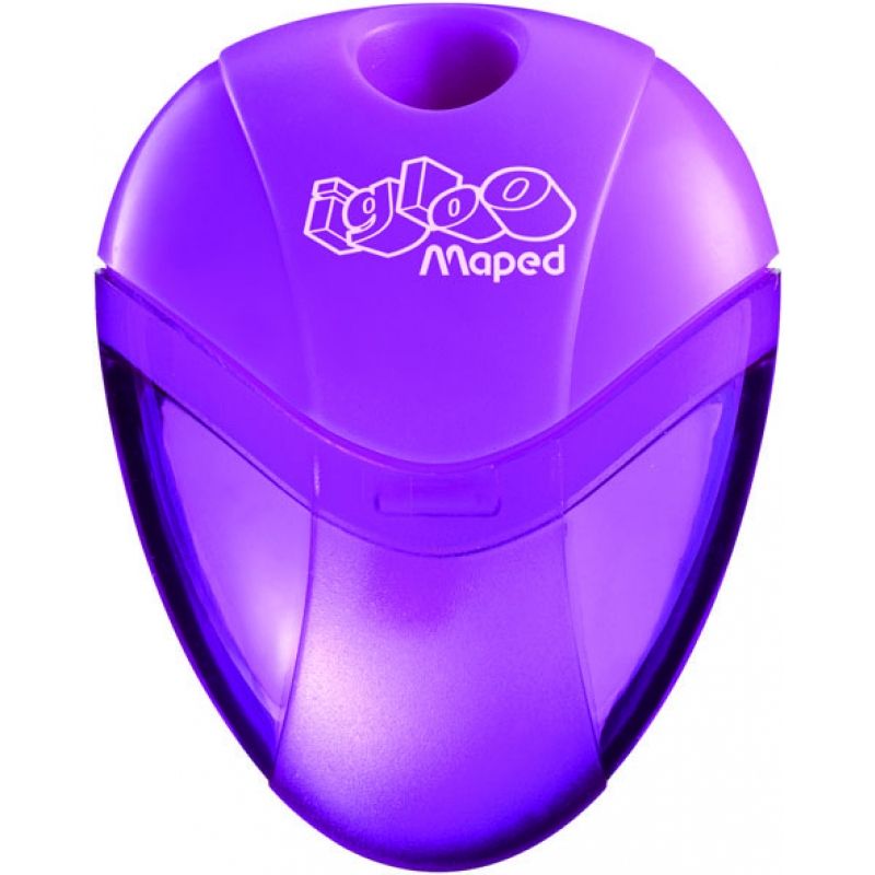 Точилка пластиковая MAPED «I-Gloo», с контейнером», 1 отверстие. Точилка изготовлена из ударопрочного пластика с вместительным полупрозрачным контейнером. Цвет точилки для карандашей ассорти: оранжевый, синий, сиреневый.