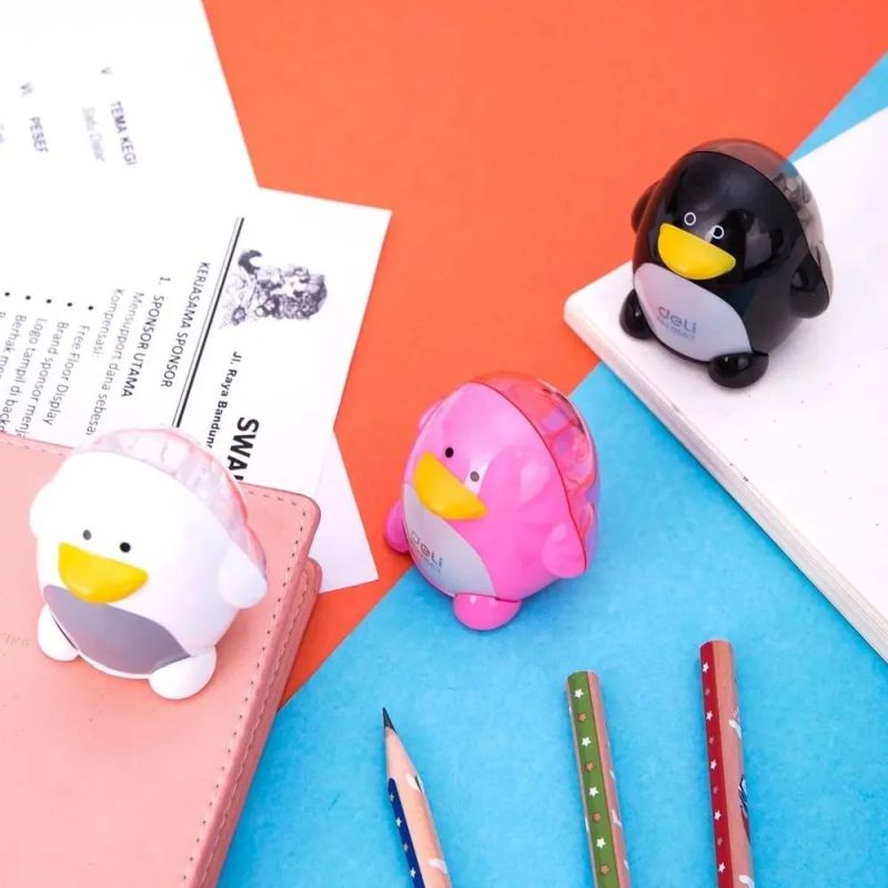 Точилка пластиковая «ПИНГВИН», 2 отверстия, с контейнером, в блистере. Предназначена для заточки стандартных карандашей из дерева или пластика. Оснащена острыми стальными лезвиями, легко затачивает карандаши всех типов. Отверстия для карандашей располагаются на дне точилки. Для сбора стружки оснащена контейнером. Имеет оригинальный привлекательный внешний вид, удобна и безопасна в использовании.