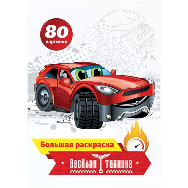 Большая раскраска А4, «Веселая техника», 80стр., склейка