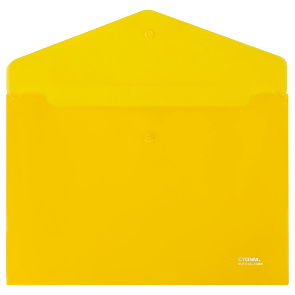 Папка-конверт на кнопке А4 «СТАММ», 180 мкм, пластик, прозрачная с глянцевой текстурой поверхности. Предназначена для хранения любых документов формата А4. Крепкая кнопка выдерживает многократное ежедневное использование. Папка-конверт на кнопке обладает привлекательным внешним видом, имеет красивые насыщенные цвета и гладкую глянцевую поверхность.