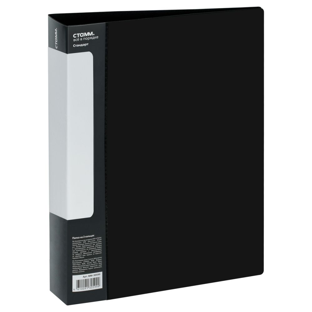Папка на 2-х кольцах СТАММ «Стандарт» А4, 40 мм, 700 мкм, черная