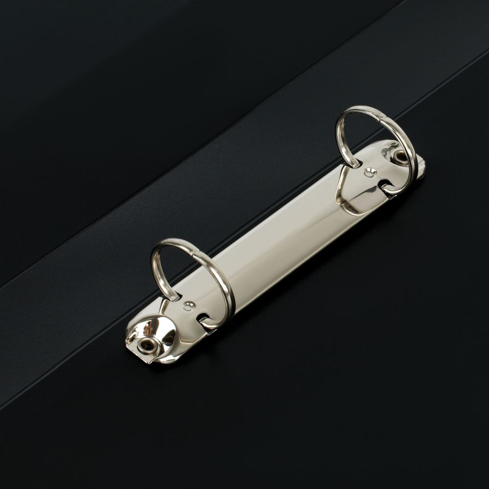 Папка на 2-х кольцах СТАММ «Стандарт» А4, 40 мм, 700 мкм, черная. Предназначена для хранения перфорированных документов формата А4. Цвет папки – черный. Изготовлена из качественного полипропилена толщиной 700 мкм с текстурой «песок». Размер изделия составляет 310*250 мм. Ширина корешка 40 мм позволяет вмещать в папку до 250 листов. Кольцевой механизм, состоящий из 2 колец диаметром 25 мм, надежно держит документы. На корешке и внутренней стороне папки имеются карманы.