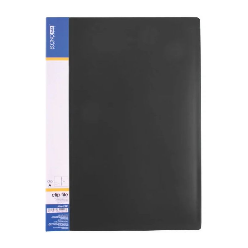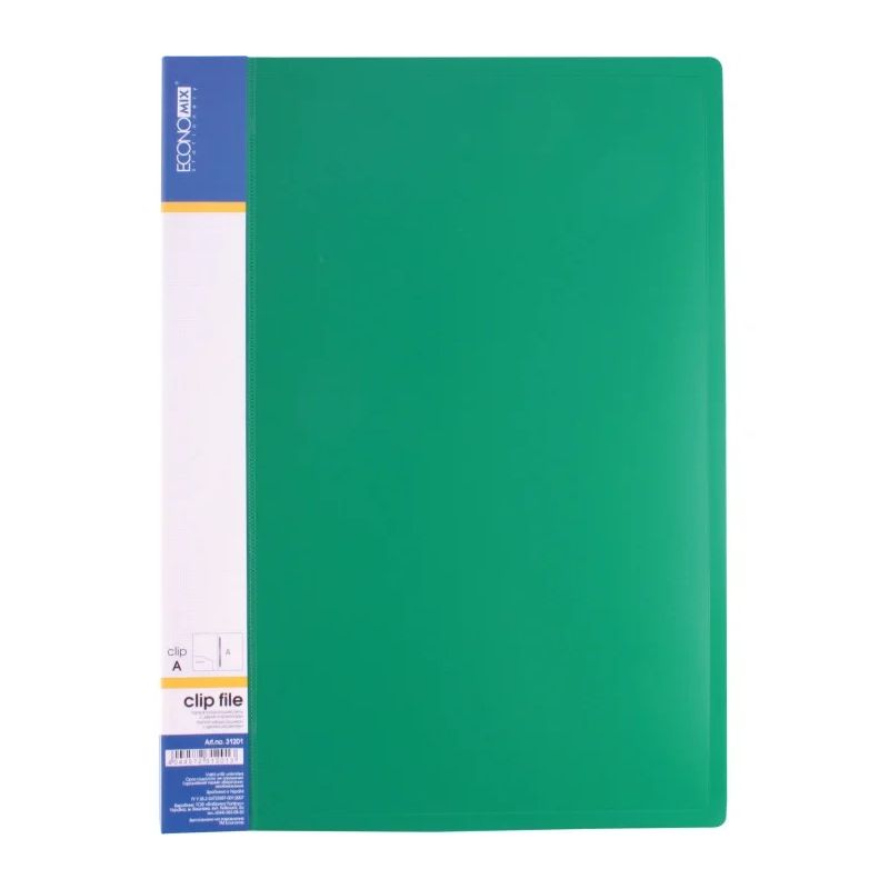 Папка-скоросшиватель пластик «CLIP A» с пружинным скоросшивателем и двумя карманами. Изготовлена из жесткого пластика 500 мкм, ширина корешка 17 мм. Имеется два пластиковых кармана, один на развороте, второй карман внешний на корешке (подпись содержания). В ассортименте классические офисные цвета.
