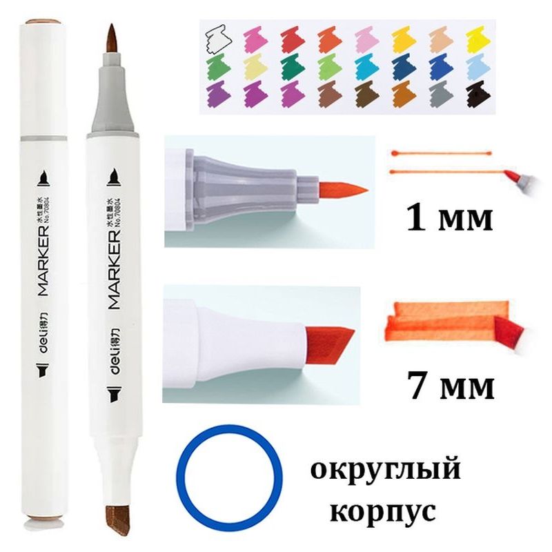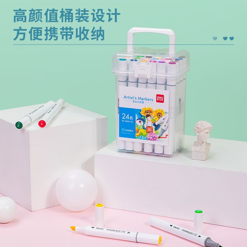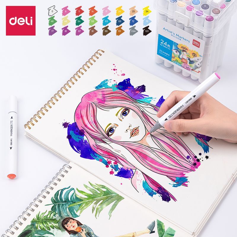 Набор маркеров для скетчинга Deli 70804-24, 24 цвета, двухсторонние, в пластиковом боксе