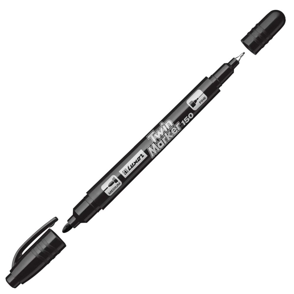 Маркер перманентный двусторонний Luxor «150», 0,7/1мм, черный. Стойкие нестираемые чернила на спиртовой основе, быстро сохнут. Пишет на любых поверхностях, подходит для нанесения надписей на CD/DVD диски. Перманентный маркер имеет плотно закрывающиеся колпачки препятствующие преждевременному высыханию. Назначение: пластик, пленка, металл, дерево, резина, бетон, камень, кирпич, стекло, картон.