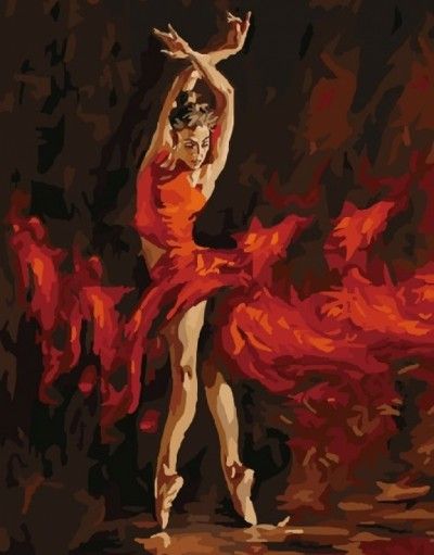 Картина по номерам 40х50 «В огненном танце». Набор для творчества с трафаретом для нанесения, красками и кисточками, в красивой яркой упаковке.