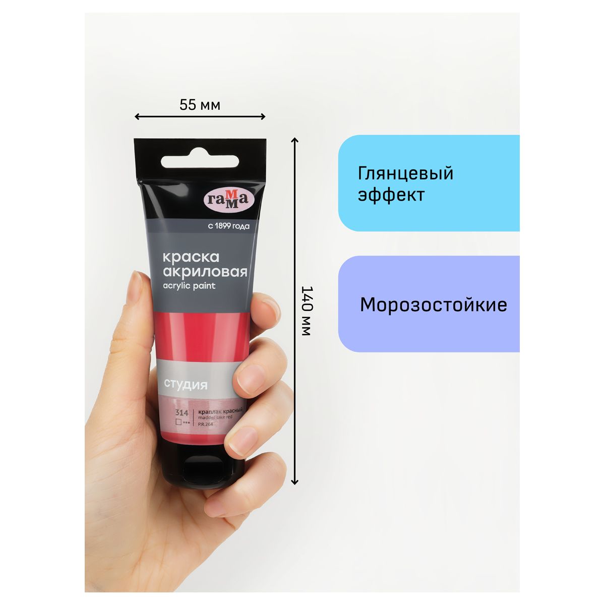 Краска акриловая художественная Гамма «Студия», 75мл, краплак красный, пластиковая туба, предназначена для художественно-живописных и декоративно-прикладных работ. Главные отличия: насыщенный цвет, густая консистенция, высокая адгезия, прочность красочного слоя. После высыхания краска становится глянцевой, практически не темнеет, специальная добавка позволяет максимально раскрыть красоту цвета. Художественный акрил прекрасно разносится, подходит для бумаги, картона, грунтованного холста, дерева, стекла, кожи, ткани. Время высыхания: от 10 минут до 1 часа в зависимости от толщины слоя. Прозрачный корпус тубы позволяет увидеть цвет краски, а удобная крышка флип-топ предотвращает высыхание.