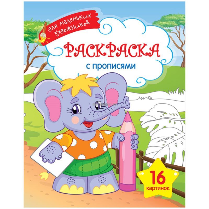 Раскраска A4, ArtSpace «Для маленьких художников — Слоник», 16стр. для детей младшего возраста. Развивает моторику, память и творческие способности. Блок — офсетная бумага 100 г/м2, 16 страниц, на скобе. Обложка — мелованный картон.