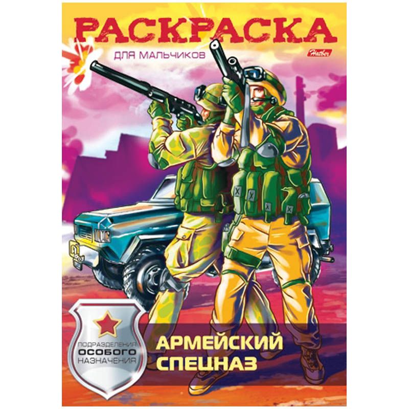 Раскраска А4 Hatber «Армейский спецназ», 16стр. Раскраска для мальчиков. Формат А4. Внутренний блок — офсетная бумага 65 г/м2.