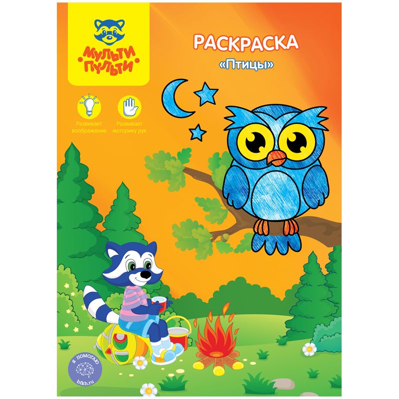 Раскраска A4, Мульти-Пульти «Птицы», 8стр. незаменимый помощник в творческом развитии ребенка. Раскраска «Мульти-Пульти» «Птицы» формата А4 и размера 290*210 мм состоит из 8 страниц. Внутренний блок – офсетная бумага плотностью 100 г/кв. м. Раскрашивание развивает мелкую моторику, воображение, способствует формированию цветового восприятия ребёнка. Товар не имеет возрастных ограничений.